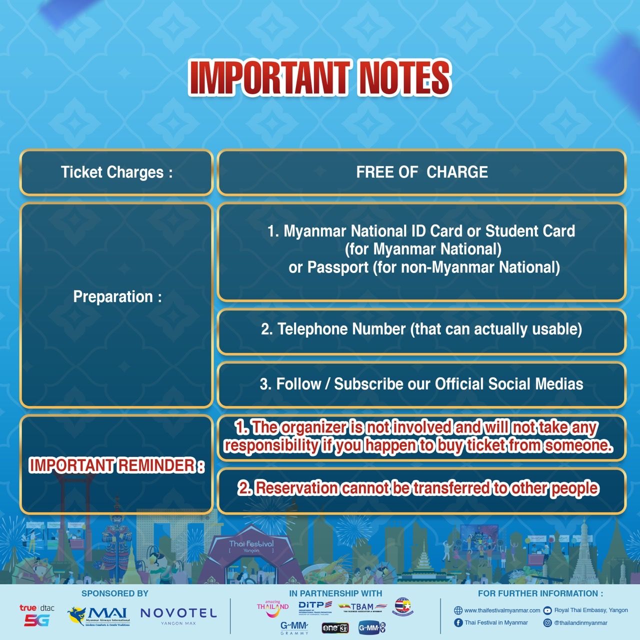 ✨ Read full details of rules and regulations at www.thaifestivalmyanmar.com/ticket