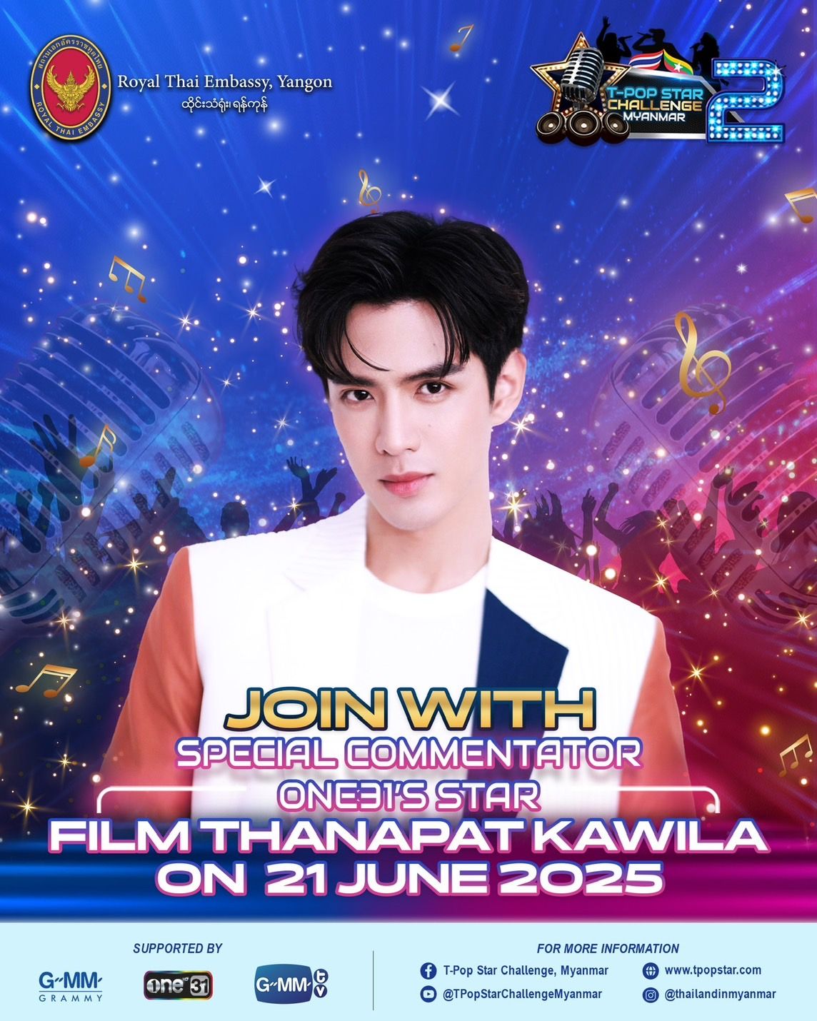 ✨"Film Thanapat", a popular Thai actor who join “Thai Festival 2025 in Yangon” will also join the semi-final round of "T-Pop Star Challenge, Myanmar Season 2" on 21 June 2025 as a special commentator! ✨✨